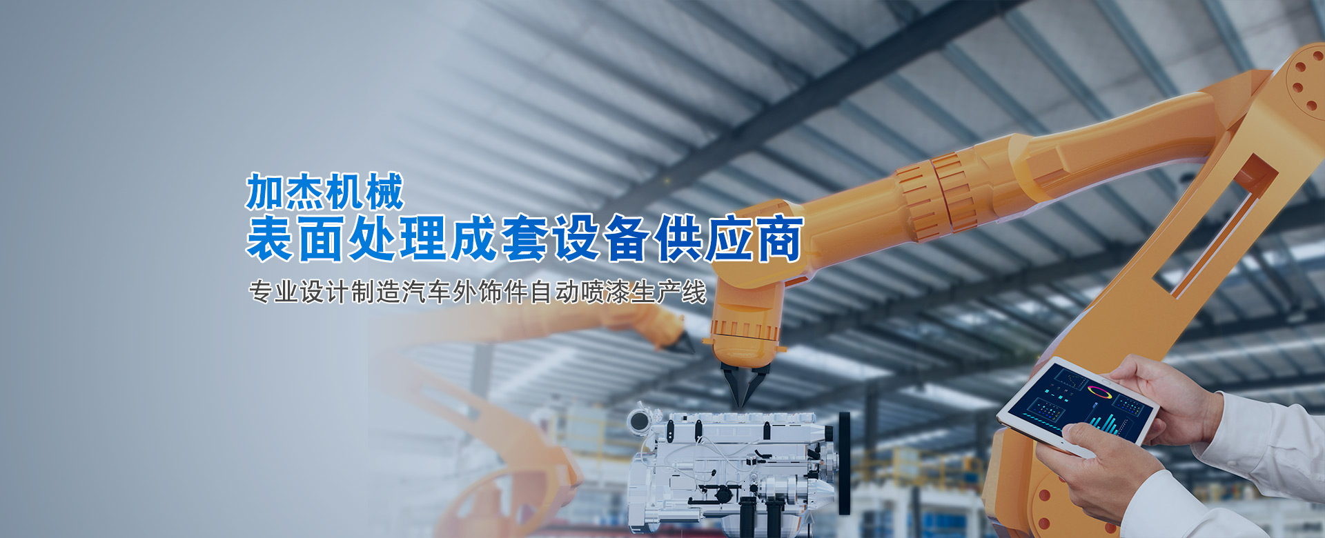 加杰智能裝備(廣東)有限公司是廣州市加杰機(jī)械設(shè)備有限公司的全資子公司,加杰成立于2007年。是一家專業(yè)于表面處理行業(yè)智能化涂裝設(shè)備的研發(fā)、設(shè)計、制造、安裝與售后為一體的綜合型企業(yè),專業(yè)于塑膠、金屬部件的噴漆、電泳、噴粉等成套自動涂裝線交鑰匙工程。 公司在廣州花都和廣清產(chǎn)業(yè)園均有自建研發(fā)及生產(chǎn)基地,占地面積六萬余㎡,旗下有加杰智能、川捷智能、漢潔科技、泰國加杰四家子公司。公司同華南理工、廣工、北理工等知名大學(xué)院校展開深度合作,并積極展開自主創(chuàng)新和...